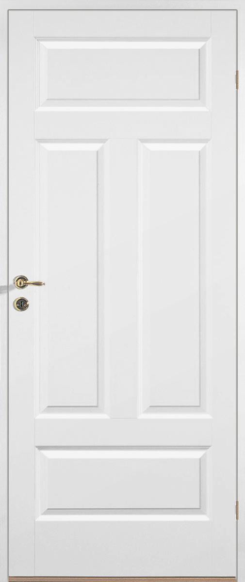Klassisk innerdörr med fyra speglar och kärna av massiv board. Vitmålad som standard men finns också i valfri kulör.