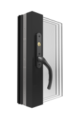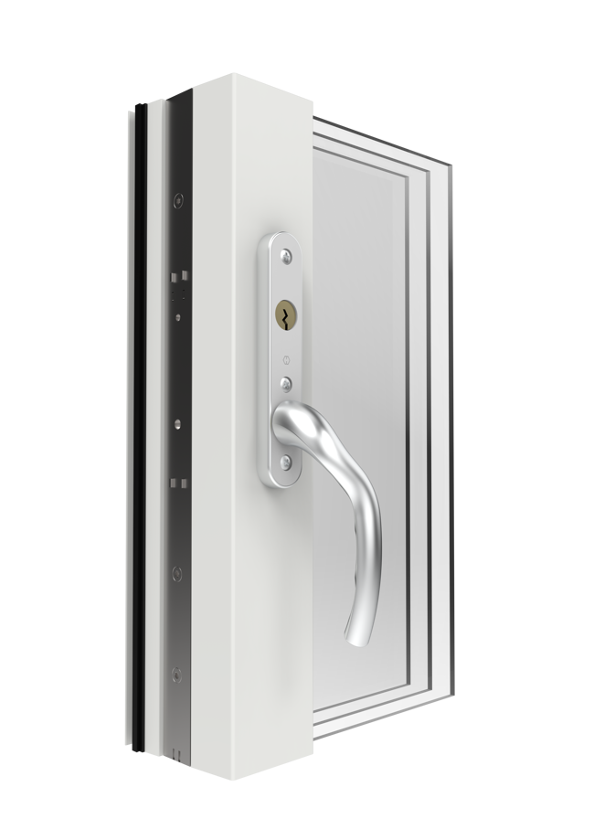 Invändigt svängt handtag vänster eller höger förberett för cylinder.