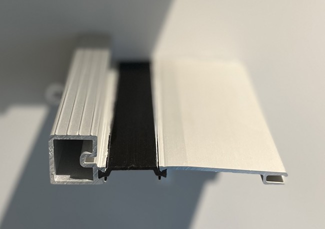 Original Trä Altan- och Fönsterdörr erbjuds med tre tröskelalternativ, här visas mellanalternativet. Tröskel av aluminium, höjd 25 mm.