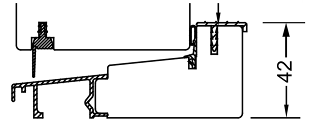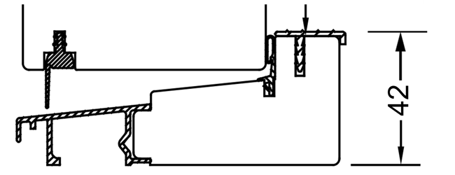 Original Trä Altan- och Fönsterdörr erbjuds med tre tröskelalternativ, här visas den högsta varianten. Tröskel i trä med utvändig del av aluminium, höjd 42 mm.
