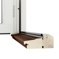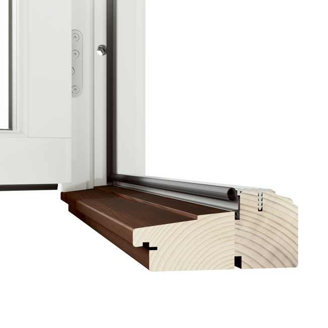 Retro Altan- och Fönsterdörr erbjuds med tröskelalternativet som visas på bilden, en tröskel i trä med höjd 48 mm.